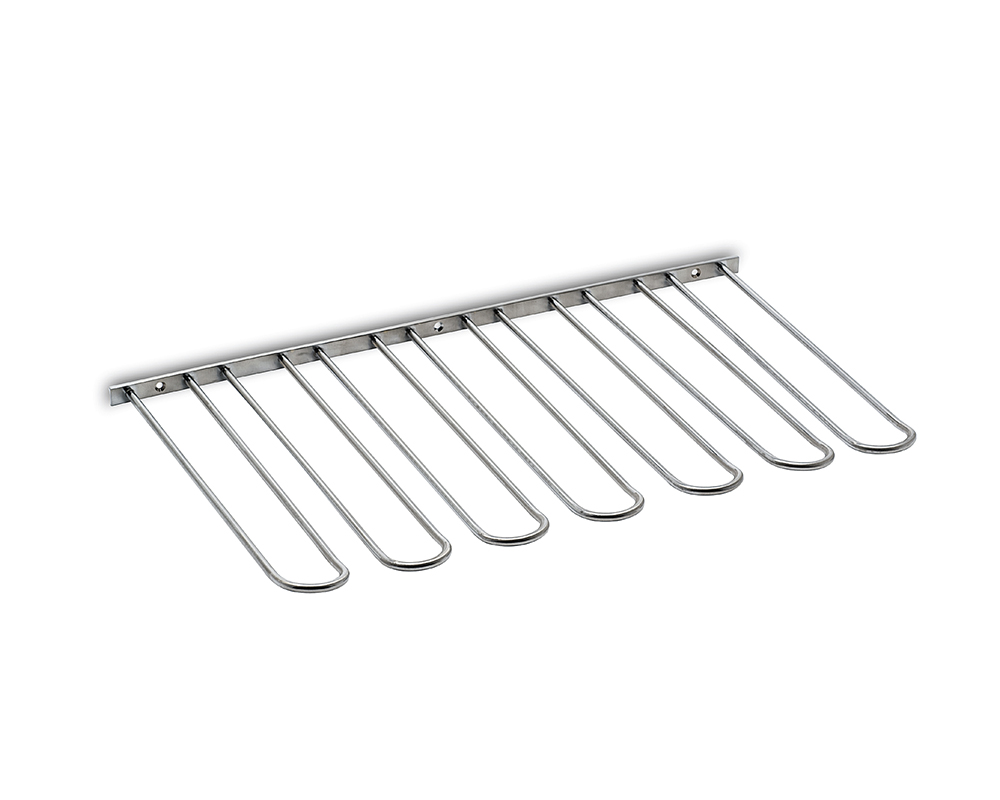 Glashängare Exclusive 875 är ett elegant alternativ med tidlös design som passar in i många typer av barer och kök. Modell 875 är anpassad för väggmontage, är 30cm djup och rymmer cirka 18 vinglas. Välj mellan fyra olika utföranden — antracit, krom, mässing och borstat rostfritt.