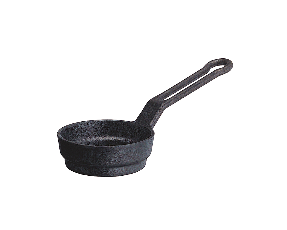 Blinipanna av gjutjärn. Insidans bottendiameter är 9cm. Djup ca 3,5cm. Vikt ca 0,8kg.