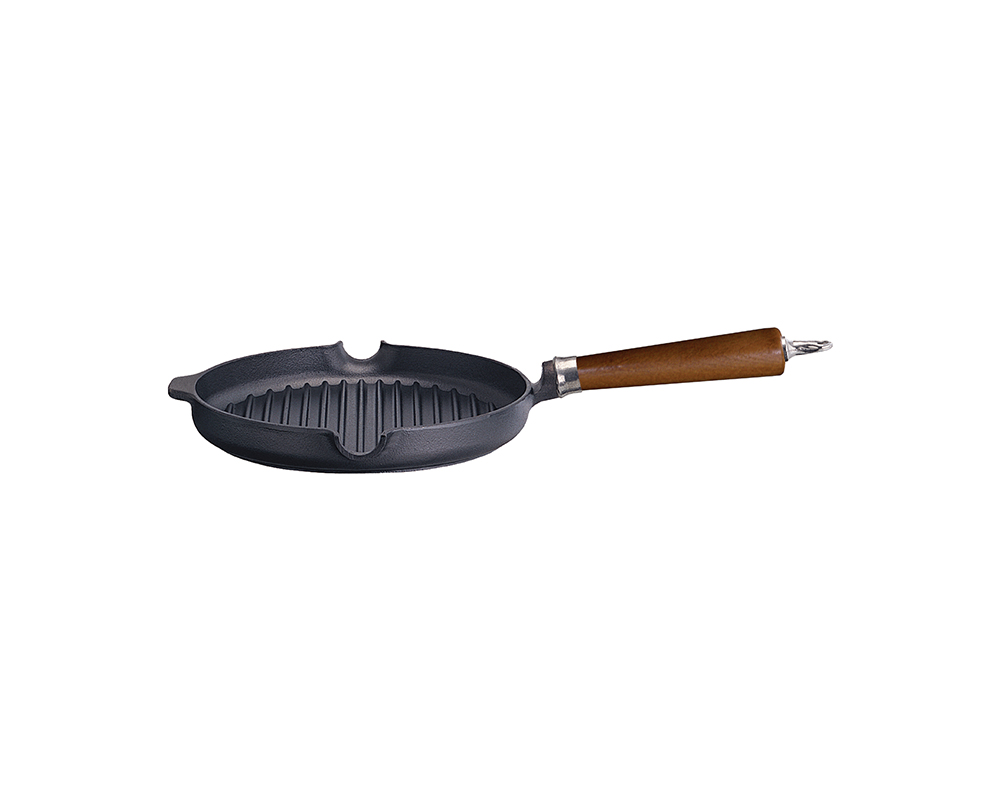 Grillpanna 25cm rund hällpipar brunlaserat skaft