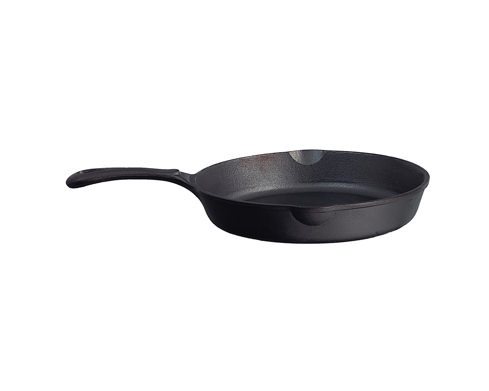 Stekpanna Ø26cm. Bottenmått ca Ø19,5cm. Kanthöjd ca 5 cm. Vikt ca 2,2kg. Traditionellt utförande med skaftet gjutet i samma stycke som stekpannan. Förinstekt med svensk KRAV-märkt rapsolja