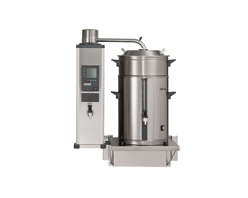 Bryggare B10 HW W L/R 1 bryggpelare, 1 behållare till vänster eller höger (10 liter) för korgfilter och vattenanslutning. Brygger stora mängder kaffe i lösa behållare. Är utrustad med varmvattenkran. Apparaten kan enkelt monteras på väggen. Utrustad med LCD-display, räkneverk för total- och dagsmängd, avkalkningssystem, ger signal när bryggningen är klar, inbyggd timer och optimalt skydd.