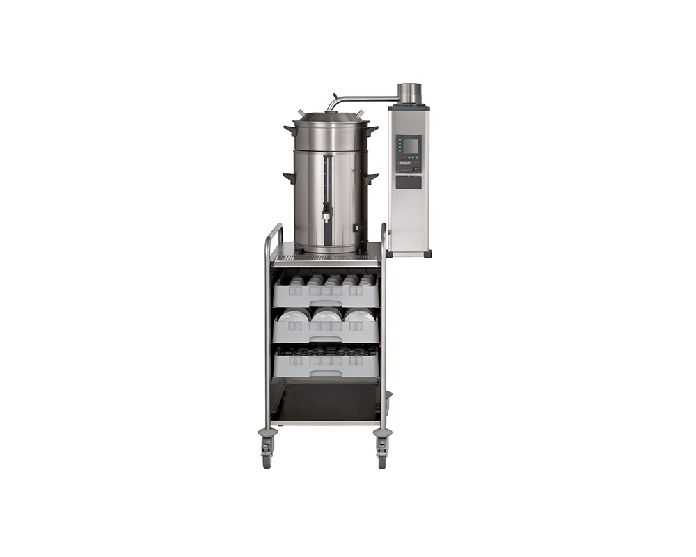 Bryggare B10 W L/R 1 bryggpelare, 1 behållare till vänster eller höger (10 liter) för korgfilter och vattenanslutning. Brygger stora mängder kaffe i lösa behållare. Apparaten kan enkelt monteras på väggen. Utrustad med LCD-display, räkneverk för total- och dagsmängd, avkalkningssystem, ger signal när bryggningen är klar, inbyggd timer och optimalt skydd.