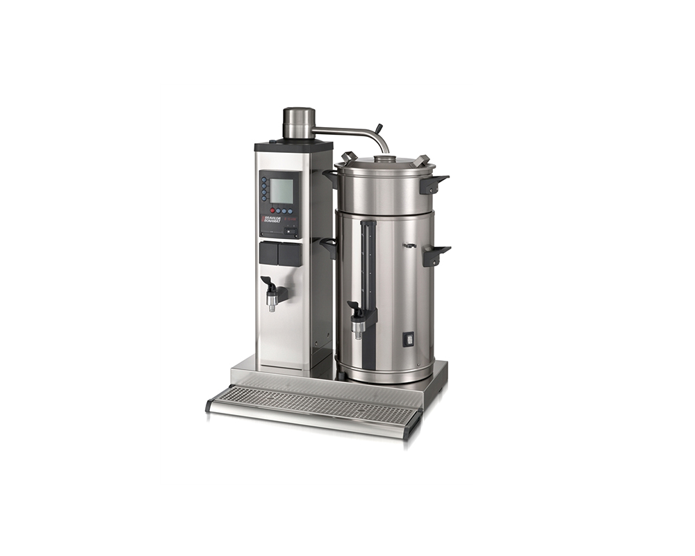 Bryggare B20 HW L/R 1 bryggpelare, 1 behållare till höger eller vänster (20 liter) för korgfilter och vattenanslutning. Brygger stora mängder kaffe i lösa behållare. Är utrustad med varmvattenkran. Utrustad med LCD-display, räkneverk för total- och dagsmängd, avkalkningssystem, ger signal när bryggningen är klar, inbyggd timer och optimalt skydd.