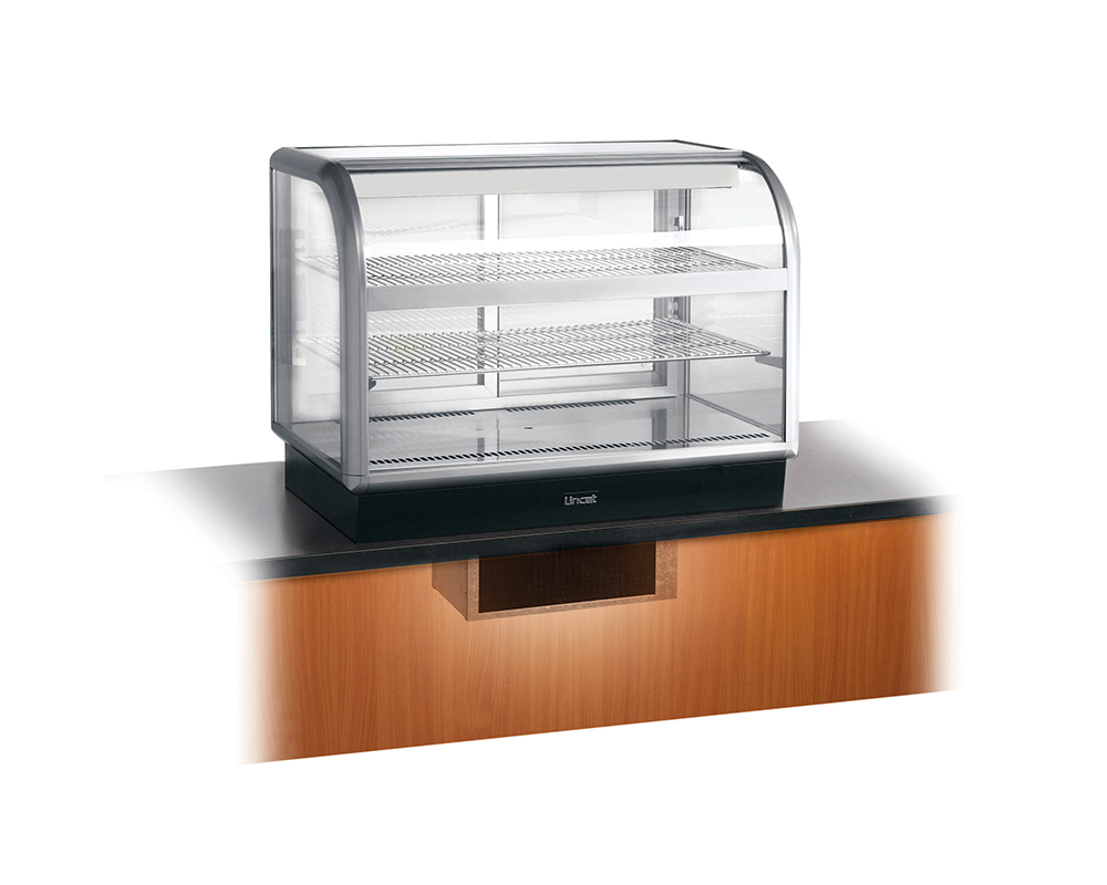 Exponeringsmonter för infällnad servicemodell med välvt frontglas, belysning, isolerglas, hetgasavfrostning och 2st gallerhyllor. Finns i 6 utföranden.