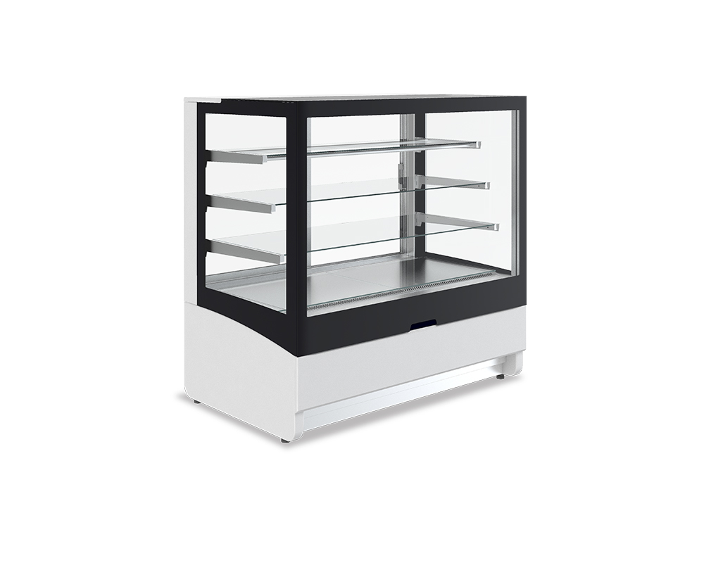 Konditorimonter Innova med utdragbar front och magnetlåsm, digital termostat, automatisk avfrostning, kondensoralarm, fläktkyld, led-belysning och justerbara hyllor i höjd/vinkel samt skjutdörrar på betjäningssidan. Finns i tre storlekar.