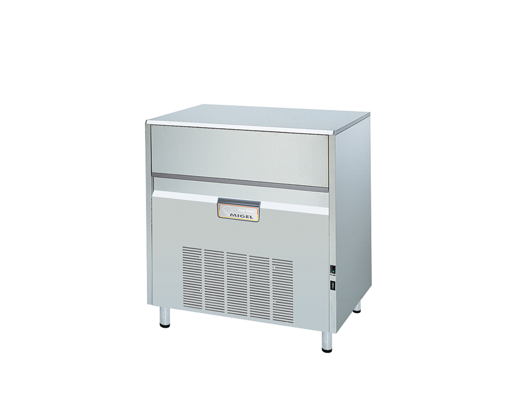 Iskubmaskin i rostfritt stål. Diskprogram dom standard, huvudströmbrytare, anpassad för livsmedelshantering, spraysystem och homogena isbitar. Finns i 7 storlekar.
