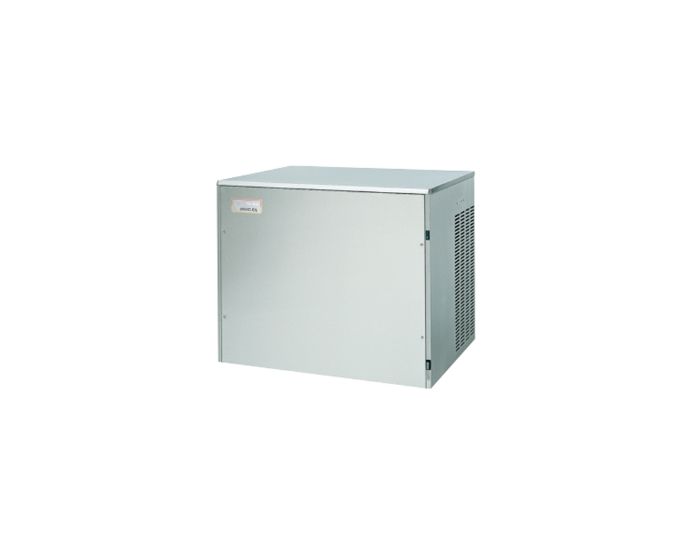 Iskubmaskin i rostfritt stål. Diskprogram dom standard, huvudströmbrytare, anpassad för livsmedelshantering, spraysystem och homogena isbitar. Finns som luft- och vattenkyld och i olika storlekar.