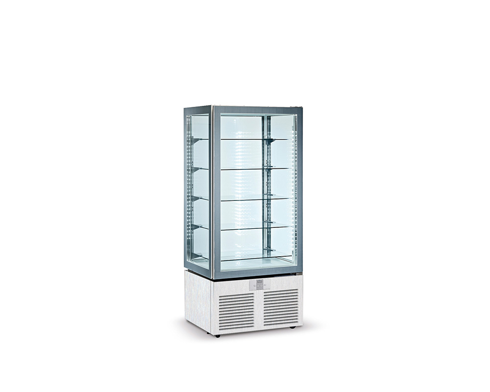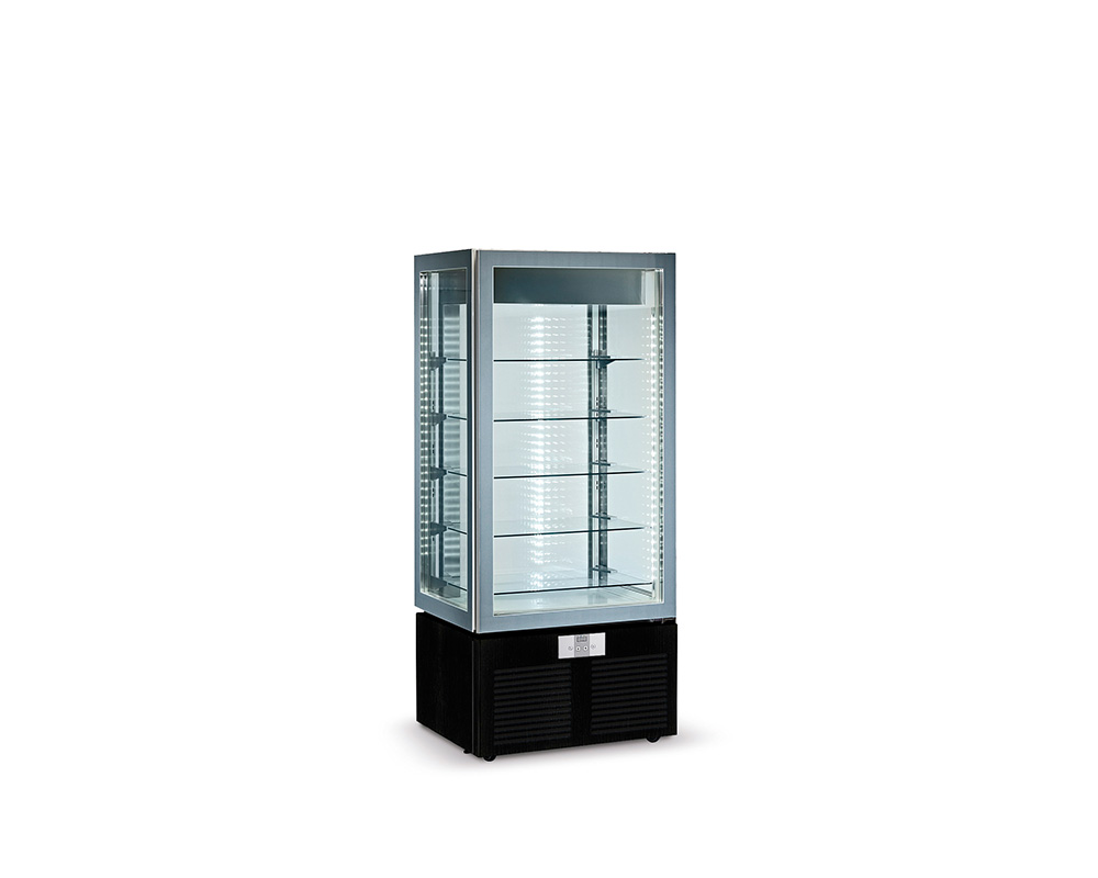 Exponeringskyl i aluminium. Med led-belysning, digital termostat med HACCP-larm, isolerglas och hjul. Finns i tre utföranden.