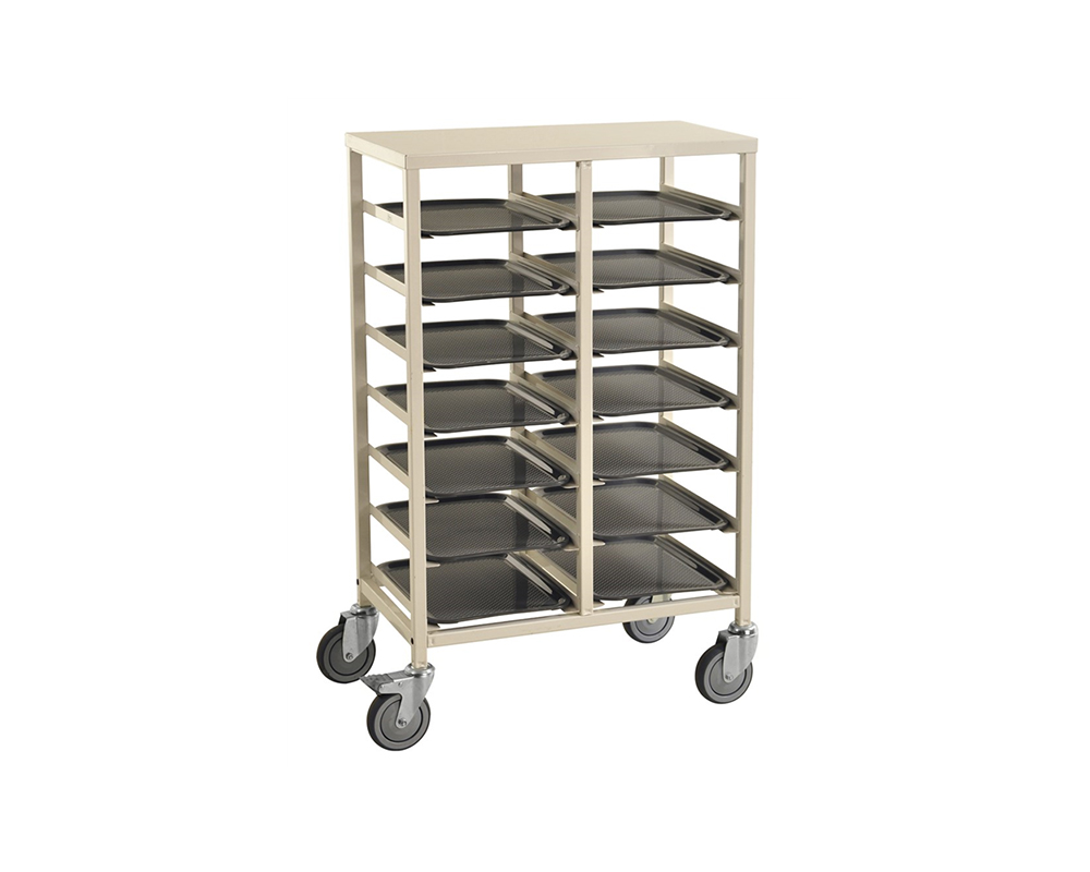 Elegant dubbel brickvagn med broms och plats för 14 brickor med måtten 40x30cm. Köp till vår bricka, KM882-B. Levereras omonterad.