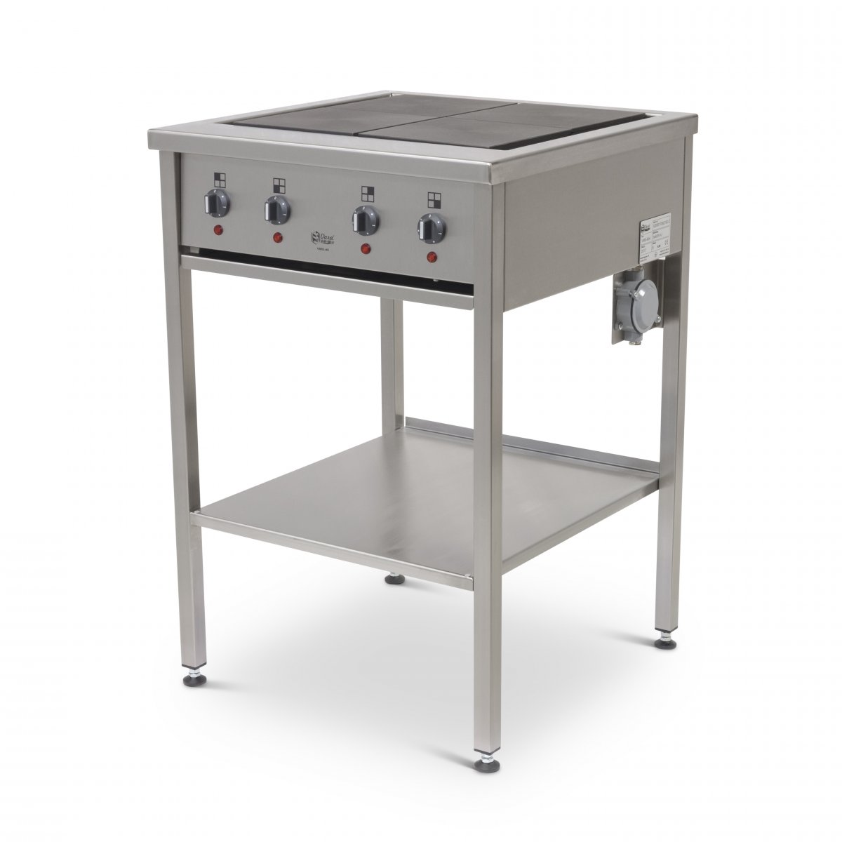 VMS-604 mini är en svensktillverkad spis i 100% rostfritt stål. Den har fyra fyrkantiga kokplattor som är 22x22cm med en effekt på 8kW. Spisen har en fast underhylla för avställning av koktillbehör, och varje kokplatta kan tippas för enkel rengöring.