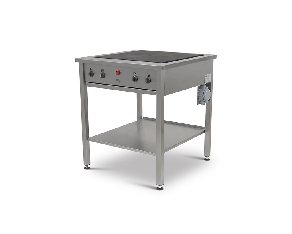 VMS-804 är en svensktillverkad spis i 100% rostfritt stål. Spisen har fyra kokplattor på 30x30cm vardera med en effekt på 10kW. Bordet passar in i de flesta kök och är 78,5cm djupt och 78,5cm brett. Se produktblad för tillval & alternativ!