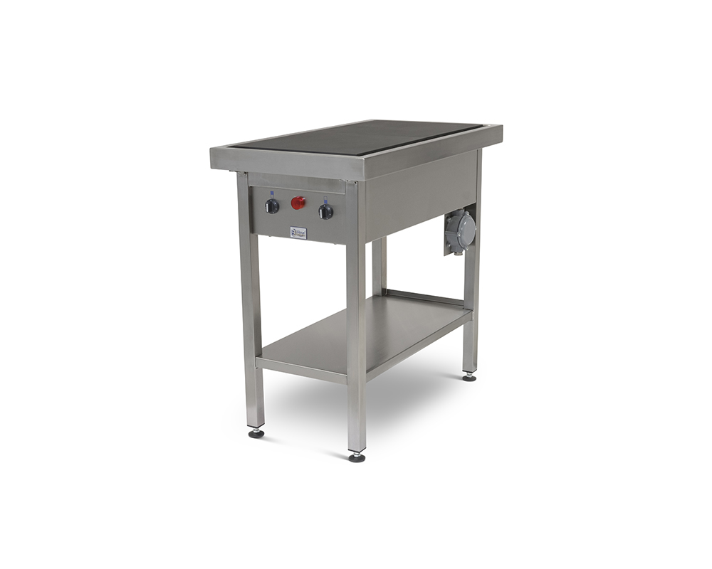 VMS-902 är den minsta spisen i 900-serien och är svensktillverkad i 100% rostfritt stål. Spisen har två plattor på 40x40cm vardera med en effekt på 8kW tillsammans. Kokplattorna är noggrant monterade och avvägda så dom tillsammans bildar en enhet. Spisen har temperaturbegränsning som standard. Se produktblad för tillval & alternativ!