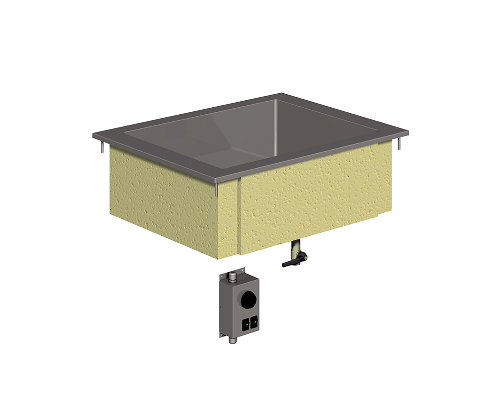 Vattenbad med med drop in line, 21cm brunnsdjup, PU-isolerade sidor och rundade innerhörn, avlopp/kulventil, värmematta och termostatstyrning. Finns i fyra storlekar.