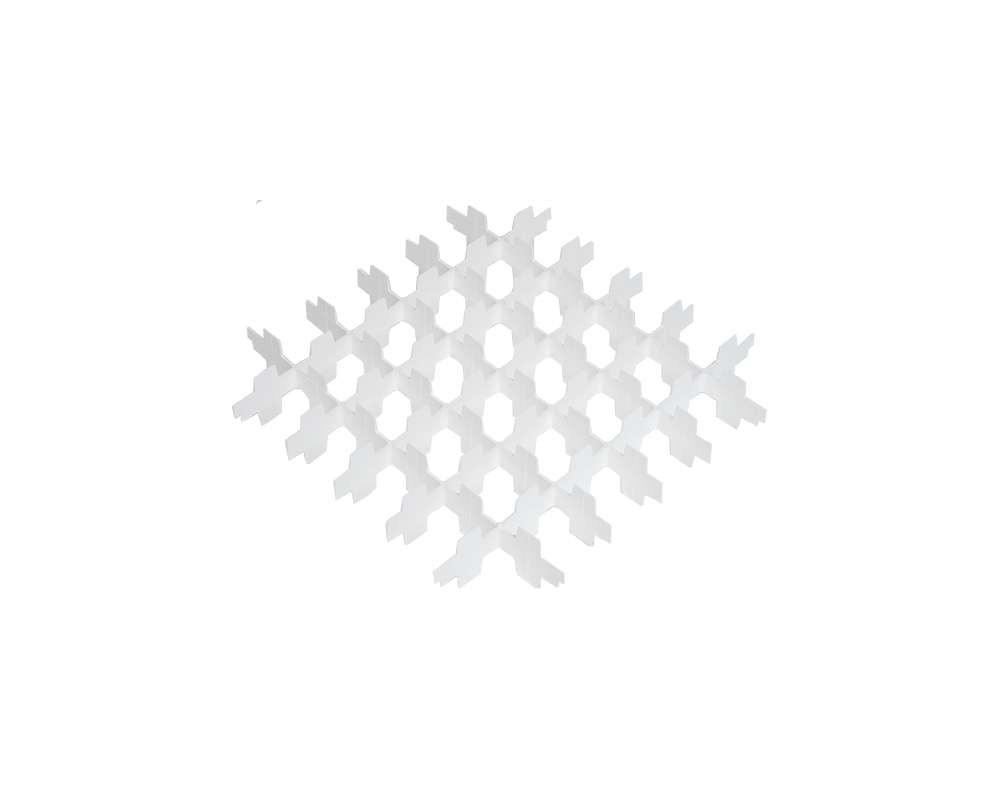 Vit fackindelning som monteras i en diskkorg eller i en förhöjningsram. 48x48cm Höjd6cm