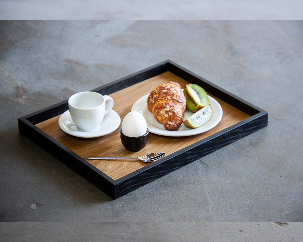 Serveringsbricka Linoljad ek/svart ram 43x33cm