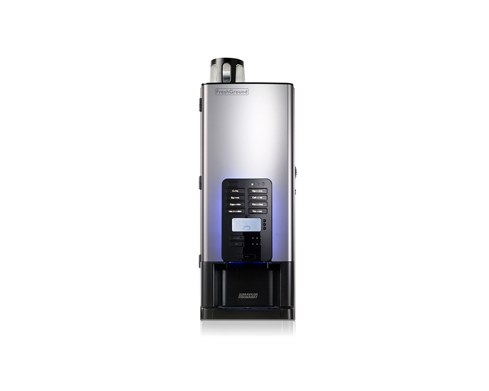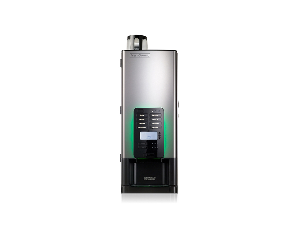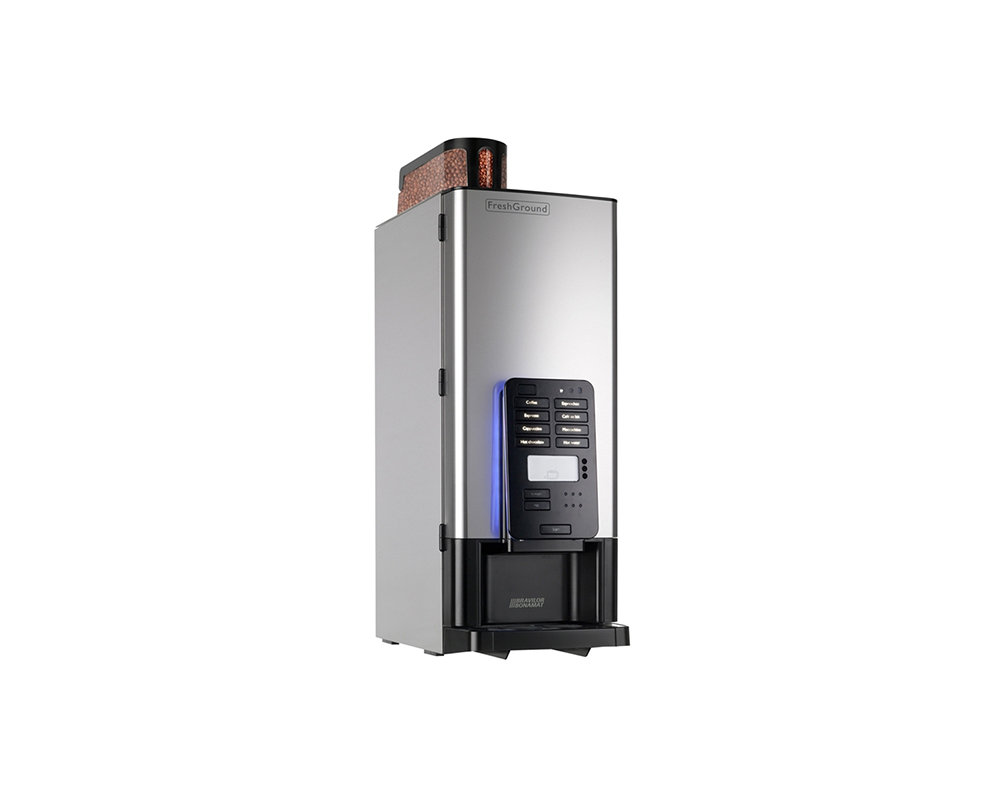 FreshGround 310 med 3 behållare (varav en för kaffebönor) för kaffe, espresso, cappuccino, choklad, kaffe med mjölk, Wiener melange, espresso och varmt vatten. Med väljarknapp för att lägga till mjölk i kaffet. För utrymmen med vattenanslutning. Kaffeautomaten är utrustad med digital styrning, separat hetvattenkran, spillbricka av plast, automatisk avkalkningsindikator och sköljprogram. Finns även modell med myntmekanism (C).