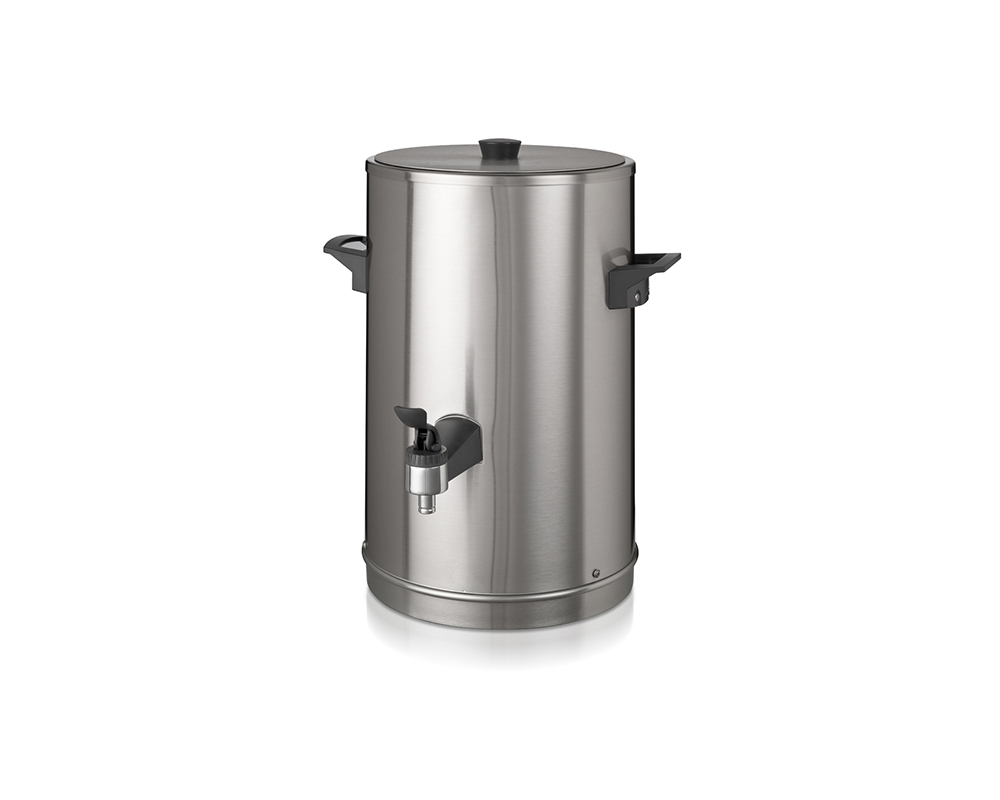 Eluppvärmd dubbelmantlad behållare 10L med non-drip tappkran, nivåglas, inner- och ytterlock. Att användas i kombination med urnbryggare eller separat.